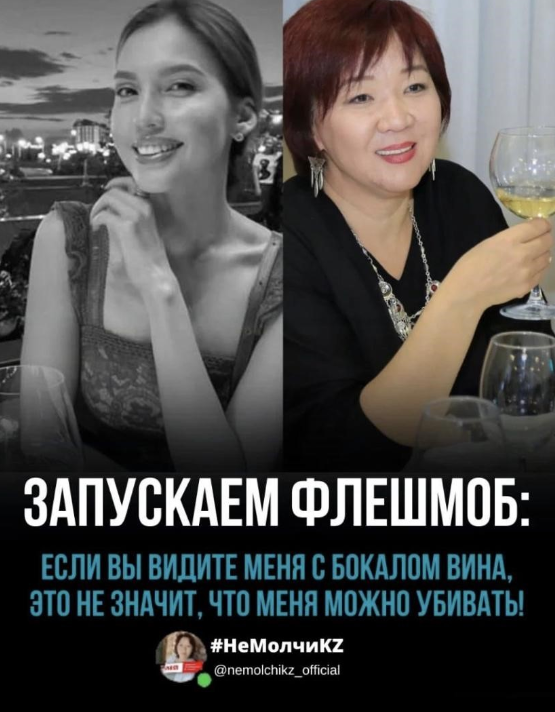 Women across Kazakhstan and neighboring countries shared photos of themselves holding glasses of wine, symbolizing solidarity and protesting against victim-blaming and domestic violence.